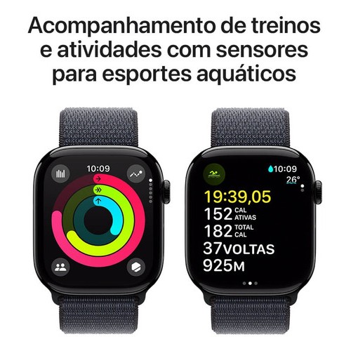 Resistência à Água e Poeira: Com classificação de 50 metros de resistência à água e IP6X de resistência à poeira, o Apple Watch Series 10 é perfeito para nadar ou praticar atividades ao ar livre, mesmo em condições adversas.